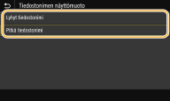 Valitse <Lyhyt tiedostonimi> tai <Pitkä tiedostonimi>