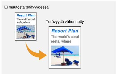 Voit säätää kuvan terävyyttä. Lisää terävyyttä, kun haluat tarkentaa sumeaa tekstiä tai viivoja, tai vähennä terävyyttä, kun haluat parantaa lehtikuvien ulkoasua.