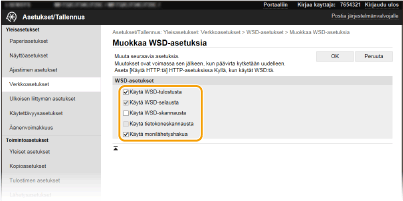 Valitse WSD-tulostuksen valintaruutu. Kun ei käytetä WSD-tulostusta, poista valintaruudun valinta. [Käytä WSD-selausta]