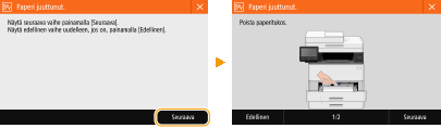 Kun poistat juuttunutta paperia, älä katkaise laitteesta virtaaVirran katkaiseminen poistaa tulostettavana olevat tiedot. Ole erityisen varovainen, kun vastaanotat faksiasiakirjoja.