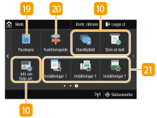 SnabbvalsknapparVisa "Favoritinställningar" som är registrerade för kopiering, faxning och skanning. Lägga till knappar på skärmen Hem