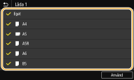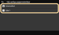 Pappersformat som inte är markerade kan visas genom att du väljer <Andra storl.> på skärmen där du väljer pappersformat.