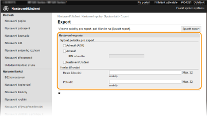 Pokud je políčko [Adresář (ABK)] již označené, nemůžete exportovat nastavení stroje současně s daty adresáře.