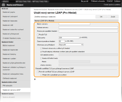 Klikněte na možnost [Uložit nový server] v části [Server LDAP (Pro Hledat)] nebo [Server LDAP (Pro Ověření)].