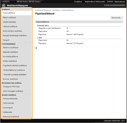 A Távoli felhasználói felületen a készülék számos beállítása módosítható. A legtöbb beállítás a készüléken is megadható, de vannak olyanok is, amelyek csak a Távoli felhasználói felületen. Ebben a fejezetben azt az alapvető eljárást mutatjuk be, amelyet követve módosíthatja a készülék beállításait a Távoli felhasználói felületről.
