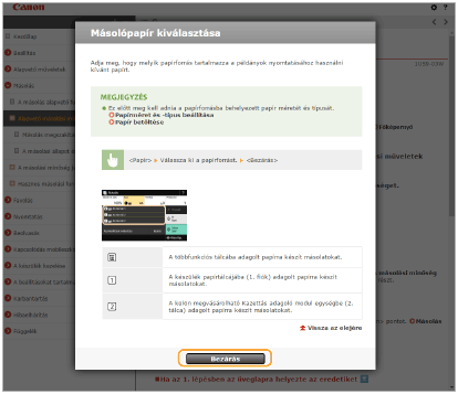 Amikor rákattint az ikonra, az aktuális oldal elsötétülhet, és megjelenhet egy előugró ablak. Az oldalhoz való visszatéréshez kattintson a [Bezárás] lehetőségre az előugró ablakban.