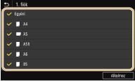 Törölje a jelölőnégyzet jelölését azoknál a papírméreteknél, amelyeket nem kíván megjeleníteni.