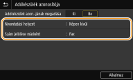 Válassza a <Be> lehetőséget itt: <Adókészülék azon.-jának megadása>