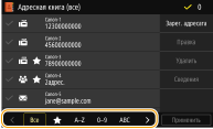 Можно изменять настройки, например изменить зарегистрированный номер факса или имя, изменить тип адресата, зарегистрированного как номер факса, на адресата электронной почты, изменить номер кодированного набора, а также добавлять или удалять групповых адресатов. Можно также удалять адресатов или группы.