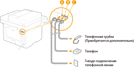 При подключении внешнего телефона с функциями факсимильной связи необходимо настроить на телефоне функцию приема факсов вручную.
