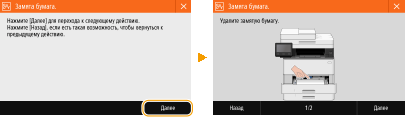 При устранении замятия бумаги не выключайте устройство.Выключение устройства приведет к удалению отправленных на печать данных. Соблюдайте осторожность при приеме документов по факсу.
