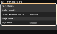 Parāda tādus tīkla iestatījumus kā iekārtas IP adresi un tādu statusu kā bezvadu LAN sakaru stāvokli.