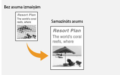 Ir iespējams koriģēt kopētā attēla asumu. Palieliniet asumu, lai padarītu skaidrākus izplūdušus tekstus un līnijas, vai samaziniet asumu, lai uzlabotu žurnālu fotoattēlu izskatu.