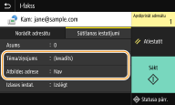 Ja ekrānā Sākums izvēlēsities adresātu sadaļā <Adr. grām.>, iekārtā var tikt parādīts interneta faksa pamatfunkciju ekrāns, izvēlētajam adresātam paliekot norādītam.