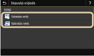 Izvēlieties <Grāmatas veids> vai <Kalendāra veids>