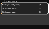Prikazuje ukupan broj kopiranih i ispisanih crno-bijelih stranica.