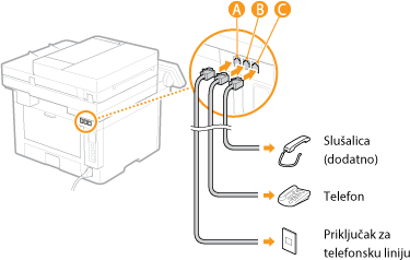 Priključite telefonski kabel u utičnicu za telefonsku liniju na uređaju (