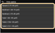 Če se ta zaslon ne prikaže, ko naložite papirČe v večnamenski pladenj vedno naložite enak papir, lahko vsakokratno nastavljanje papirja preskočite tako, da velikost in vrsto papirja registrirate kot privzeto nastavitev. Ko registrirate privzeto nastavitev, se zgornji zaslon ne prikaže. Zaslon odprete, tako da izberete <Določi pri nalaganju papirja> (Registracija privzetih nastavitev papirja za večnamenski podstavek).