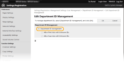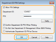 [Confirm Department ID/PIN When Printing]/[Confirm Department ID/PIN When Sending Faxes]