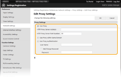 За да разрешите удостоверяването от прокси сървъра, поставете отметка и въведете потребителско име от буквено-цифрени знаци в полето [User Name].