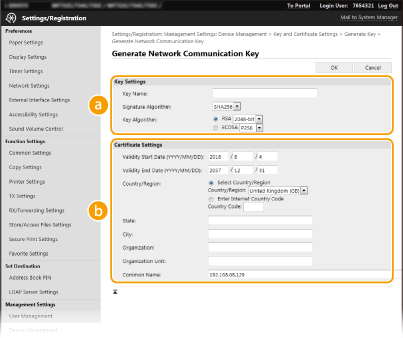 [Key and Certificate Settings].