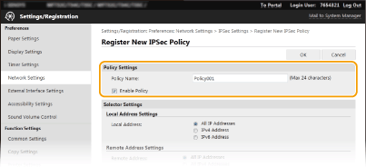 В текстовото поле [Policy Name] въведете с буквено-цифрени знаци името, идентифициращо правилото.