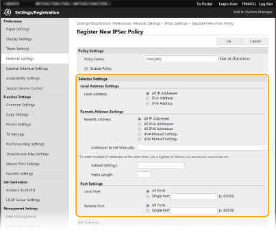 Задайте настройките [Valid for] и [Authentication]/[Encryption]/[DH Group].