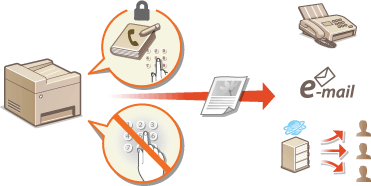 Някои случаи на изтичане на информация могат да бъдат предотвратени чрез ограничаване на достъпните дестинации за факс и имейл само до тези, които са запаметени в адресната книга или LDAP сървъри, или чрез задаване на PIN код за адресната книга, така че неупълномощени потребители да не могат да добавят или да редактират данни в адресната книга. Можете също така да избегнете изпращането на документи към нежелани получатели, ако зададете за устройството настройка за повторно въвеждане на номер на факс с цел потвърждение.