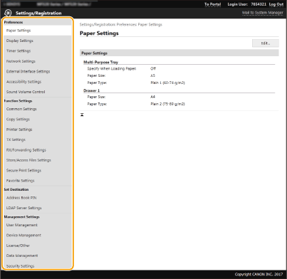 Можете да променяте различни настройки на устройството чрез Remote UI (Потребителски интерфейс за отдалечено управление). По-голямата част от настройките можете да задавате и чрез устройство, но има и такива, които можете да задавате само чрез Remote UI (Потребителски интерфейс за отдалечено управление). В този раздел са описани базовите действия за промяна на настройките на устройството с помощта на Remote UI (Потребителски интерфейс за отдалечено управление).