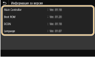 Можете да проверите версията на фърмуера от работния панел на устройството. След като приключи операцията по актуализиране на софтуера, се уверете, че актуализацията е изпълнена успешно. Проверка на версията на фърмуера