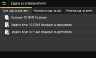 Показва текущото състояние на избрания елемент. Екранът <Задача за копиране/печат> е показан по-долу като пример.