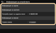 Показва състоянието на устройството, като например количеството хартия или количеството тонер, оставащо в тонер касетите.