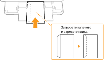 Зареждайте пликовете така, че краят с капака да е насочен към лявата страна, както е показано на илюстрацията.