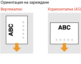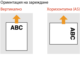 Когато използвате хартия с предварително отпечатано лого, обърнете внимание на ориентацията на хартията при зареждане. Заредете хартията правилно, така че да се печата върху правилната страна на хартията с лого.