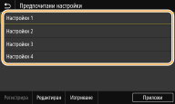 За да направите възможно бързото извикване на еднакви настройки за копиране, факс и сканиране, можете да ги запаметите като предпочитани настройки. Можете да добавите запаметени комбинации от настройки в екрана Начало като бутони за пряк път.