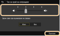 Изберете <Вкл.> (възпроизвежда се звук) или <Изкл.> (не се възпроизвежда звук).