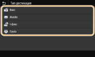 <Настройки на функция> <Изпращане> <Настройки за факс>. Настройките, направени от <Адрес. книга> обаче, са разрешени за подробните настройки на дестинациите, запаметени в адресната книга. |