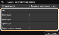 ![]() Ако се изведе екранът за удостоверяване, когато изберете <Старт търсене>, въведете потребителското име на устройството и паролата, запаметена в LDAP сървъра, и изберете <Приложи>. Запаметяване на LDAP сървъри