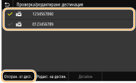 ![]() ![]() Ако поставите отметка в квадратчето за групово набиране, можете да прегледате дестинациите, запаметени в групата, като изберете <Детайли>