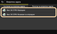 Когато за <Показване на регистър на задачи> е зададена настройка <Изкл.>, не можете да проверявате регистрите. <Показване на регистър на задачи>