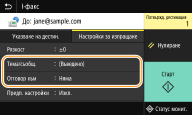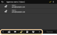 Ако изберете дестинация от <Адресна книга> в екрана Начало, екранът с основни функции за изпращане на I-факс може да се изведе, докато дестинацията остава избрана.