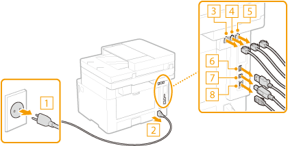 Разединете кабелите и връзките на устройството по реда, посочен в долната илюстрация.