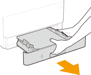 Задължително дръжте касетата за хартия с двете ръце и я вадете внимателно. В противен случай, ако касетата за хартия се изважда прекалено лесно, може да я изпуснете и тя да се повреди.