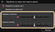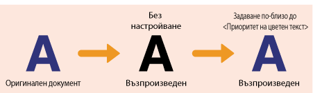 Можете да направите такава настройка, че черен или почти черен текст да се възпроизвежда в цвят, съответстващ по-точно на оригинала, който е бил сканиран цветно.