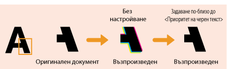 Възпроизвежда черен или почти черен текст в цвят, съответстващ по-точно на оригинала.