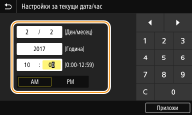 Задайте <Часова зона>, преди да настроите текущите дата и час. Ако промените настройката за <Часова зона>, текущата дата и час също ще се променят съответно.