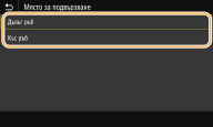 Ако ще подвързвате разпечатките с инструмент за подвързване, например телбод, укажете от тази настройка дали ще подвързвате дългия, или късия ръб на хартията. Задайте настройката за мястото на подвързване в комбинация с настройката <Поле за подвързване>, която определя ширината на полето за подвързване.