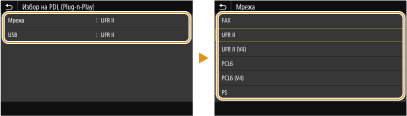 Изберете език за описание на страниците, така че устройството да се разпознава като принтер, който е съвместим с този език, когато го свързвате към компютър чрез функцията "Plug and Play".