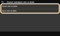 Изберете <Кратко име на файл> или <Дълго име на файл>