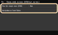 Ако не искате да използвате функцията за състоянието на тонера, изберете <Изкл.>. За да укажете бутонът, който отваря уеб сайтове за закупуване на тонер касети, да не се показва в състоянието на тонера, изберете <Вкл.> и след това <Изкл.>.